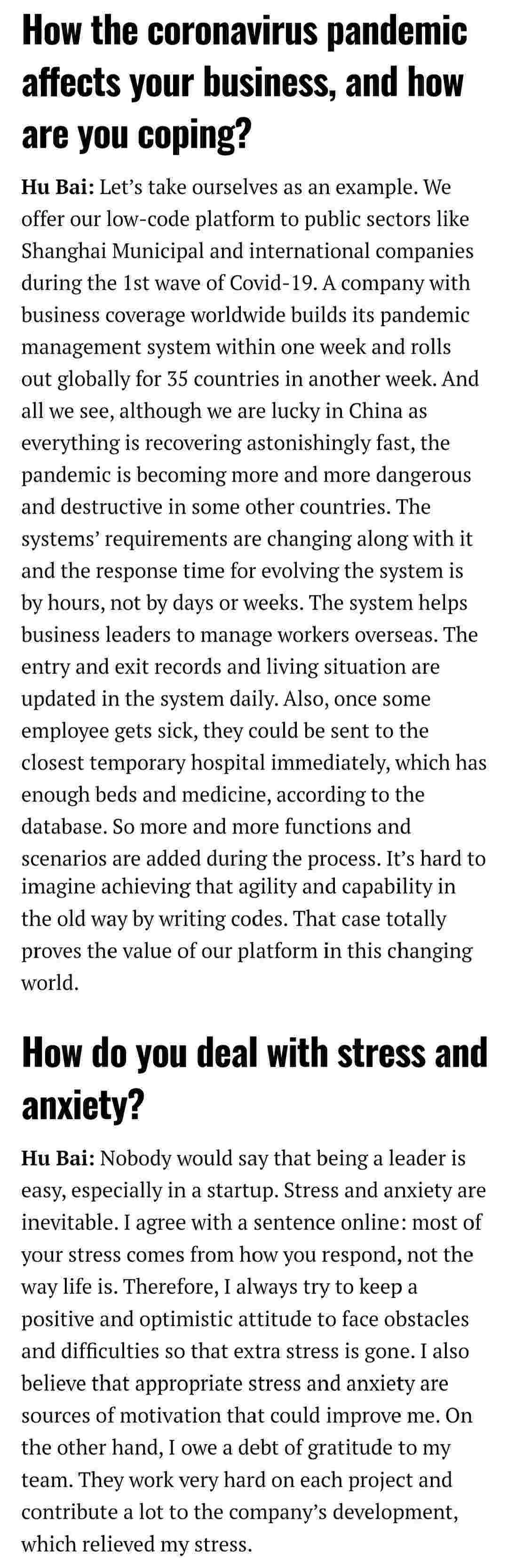 2021年年初,,,,,,,爱湃斯科技CEO胡柏受邀接受法媒Startup.info的专访,,,,,,,,,,,,与Startup info的读者分享了自己的创业经历、、、、、、、、以及低代码平台OPPO钱包的创新之处。。。。。。。