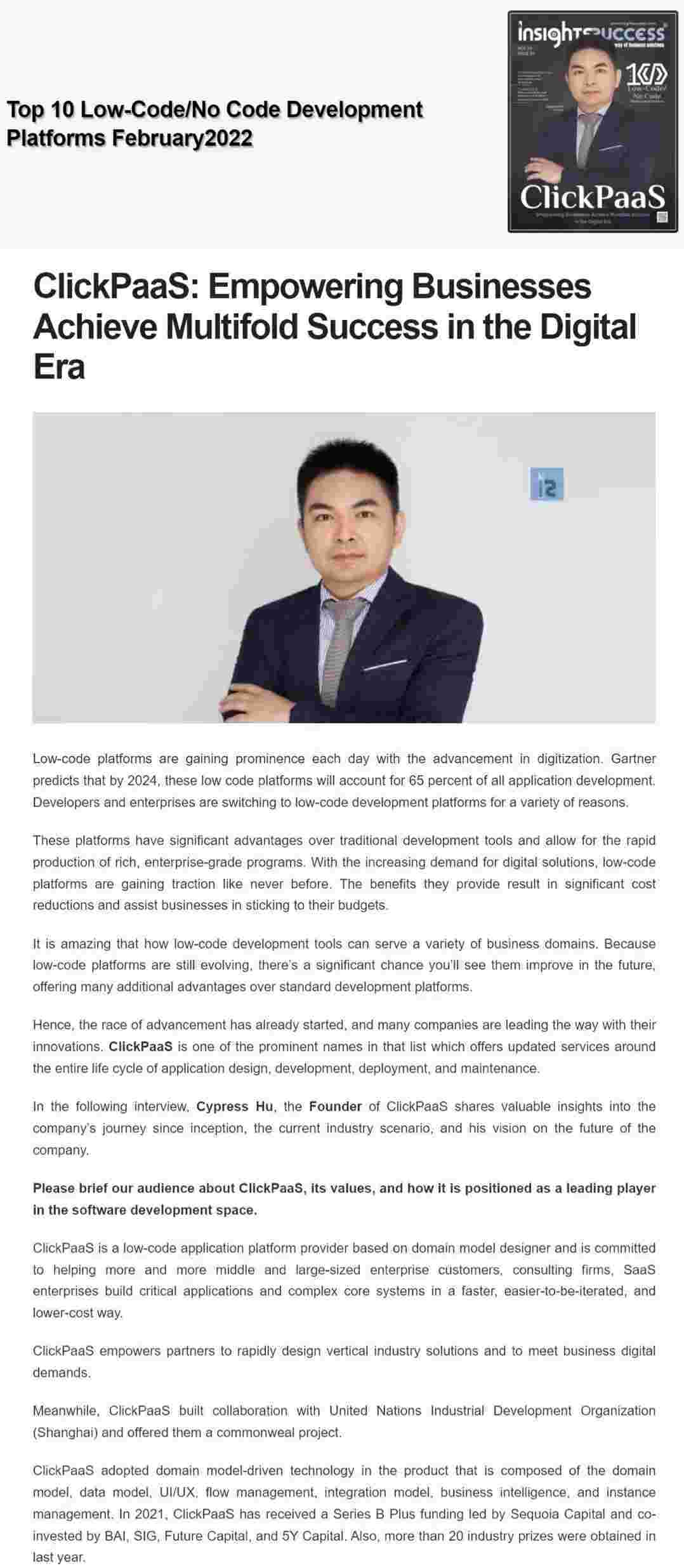 2022年年初,,,,,,,,,,OPPO钱包入选外媒Insights Success低代码/无代码开发平台 Top10,,,,,,,,,创始人、、、、、、、CEO胡柏受邀接受专访并荣登封面人物,,,,,,,,,,,,他与Insights Success的读者分享了OPPO钱包成立的初心、、、、、、、、、、发展历程、、、、、、、、、当前的行业发展趋势以及他对公司未来的展望。。。。。。。