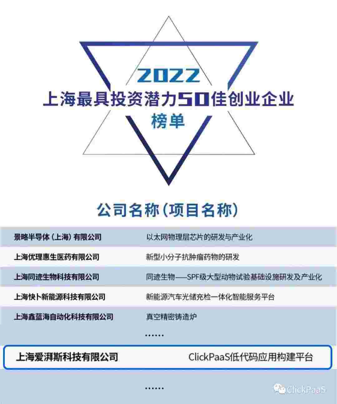 OPPO钱包 作为国内低代码PaaS平台的领军企业,,,,,,,与120家创企入围角逐。。。。。。。。期间接受了来自德同资本、、、、、、、、、、、领中资本等知名投资机构的10位投资人组成专家评委团的背靠背盲选。。。。。。。。。。并最终入围“2022上海最具投资潜力50佳创业企业”榜单,,,,,,,,,,,被列入“上海市重点培育创业企业库”。。。。。。。。